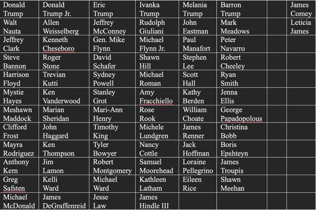 34 people associated with Donald Trump the left has gone after under the Biden administration